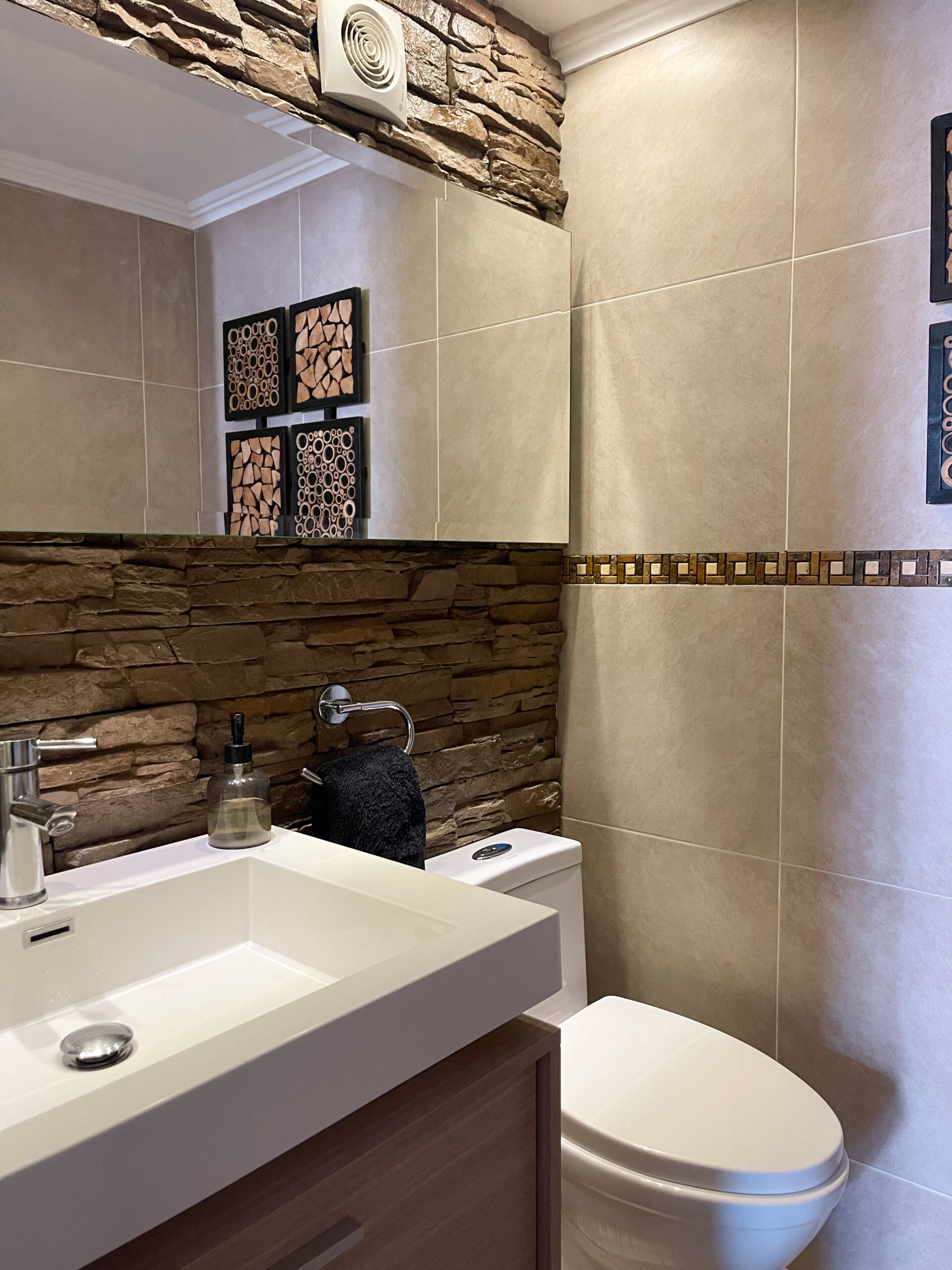 Transformamos este baño en un espacio funcional, luminoso y coherente con el lenguaje minimalista del resto de la vivienda. Se optimizó la distribución, se renovaron revestimientos, artefactos y mobiliario, priorizando materiales duraderos, líneas limpias y una atmósfera acogedora.