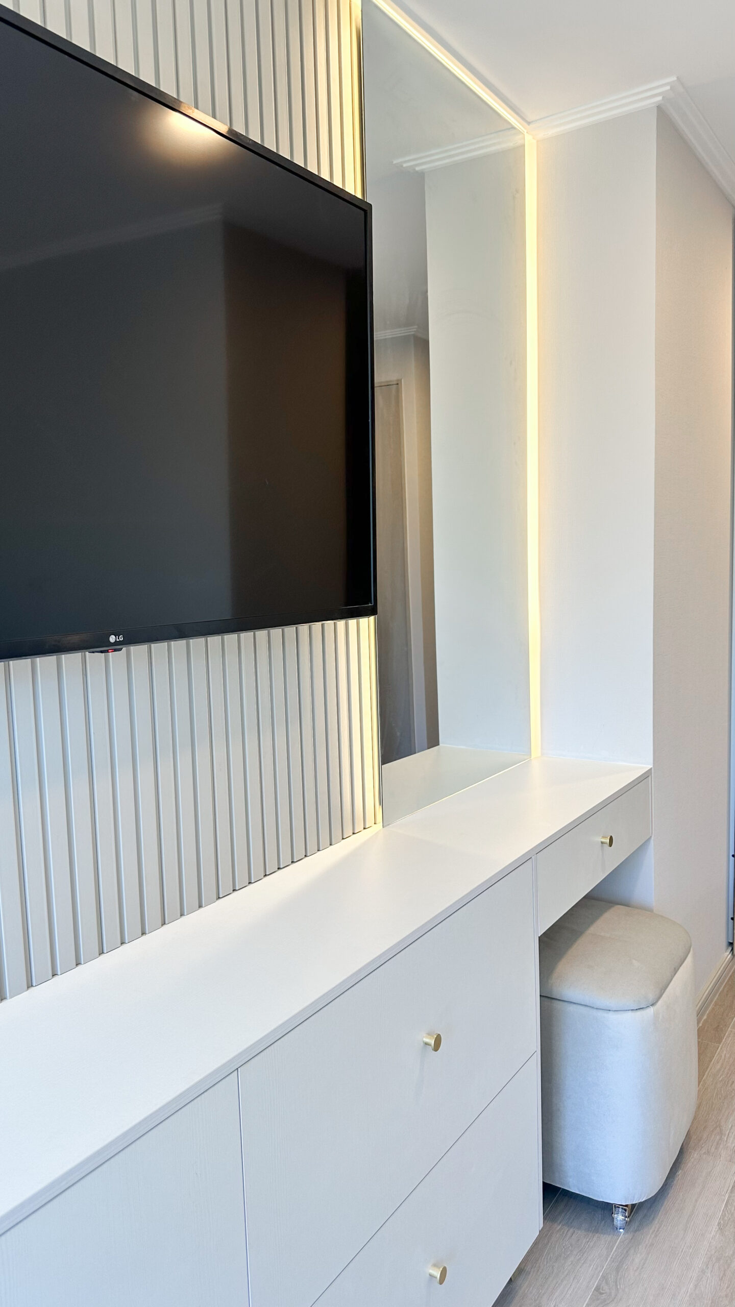 Proyecto de ampliación que optimiza el espacio de la logia, incorporando una estética limpia en tonos blancos y detalles en negro. El diseño prioriza funcionalidad, orden y durabilidad, logrando un espacio práctico y coherente con el resto de la vivienda.