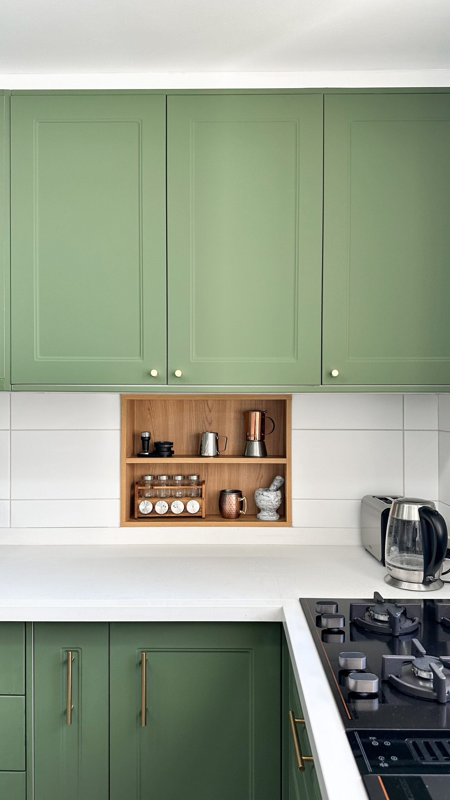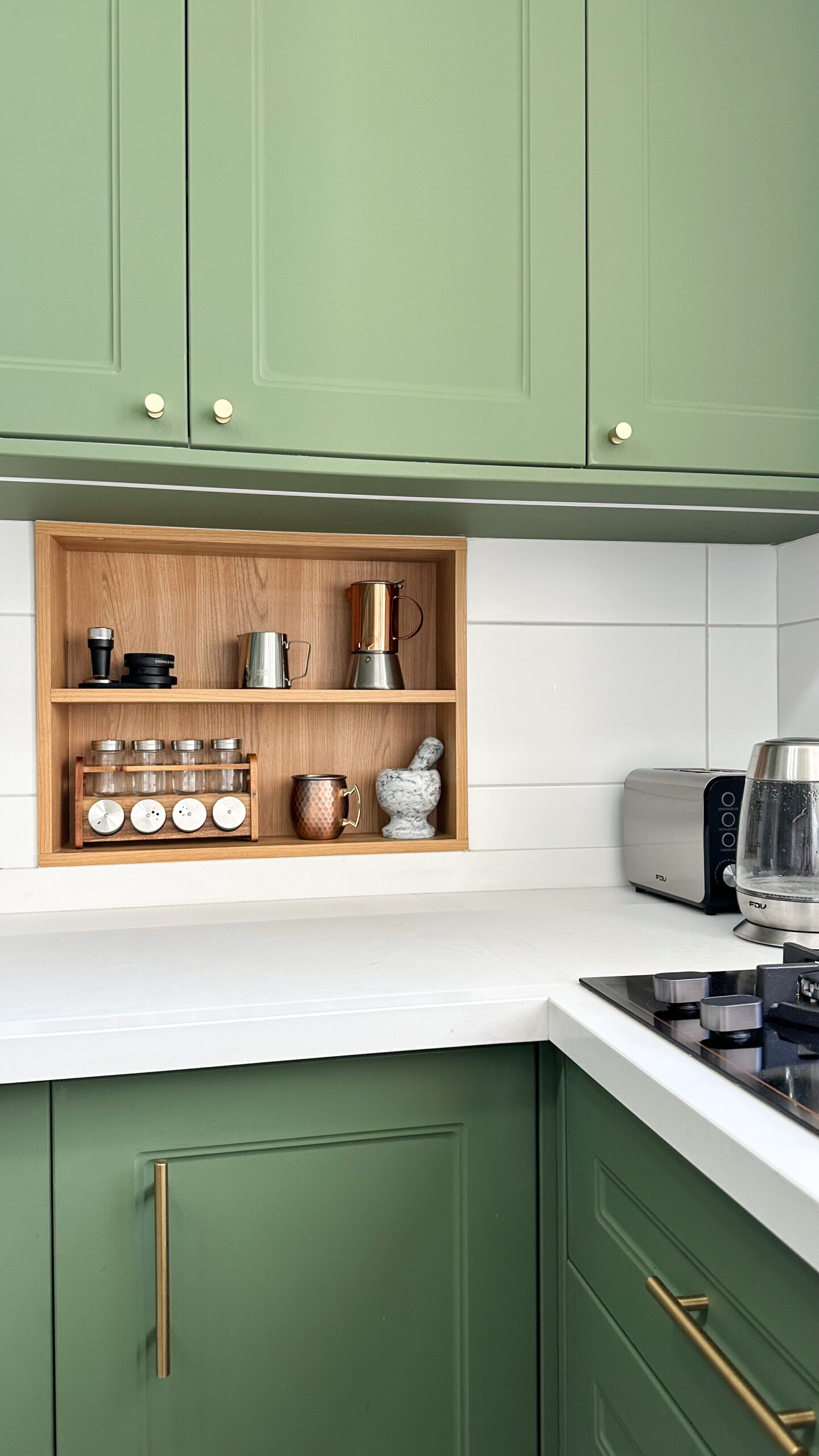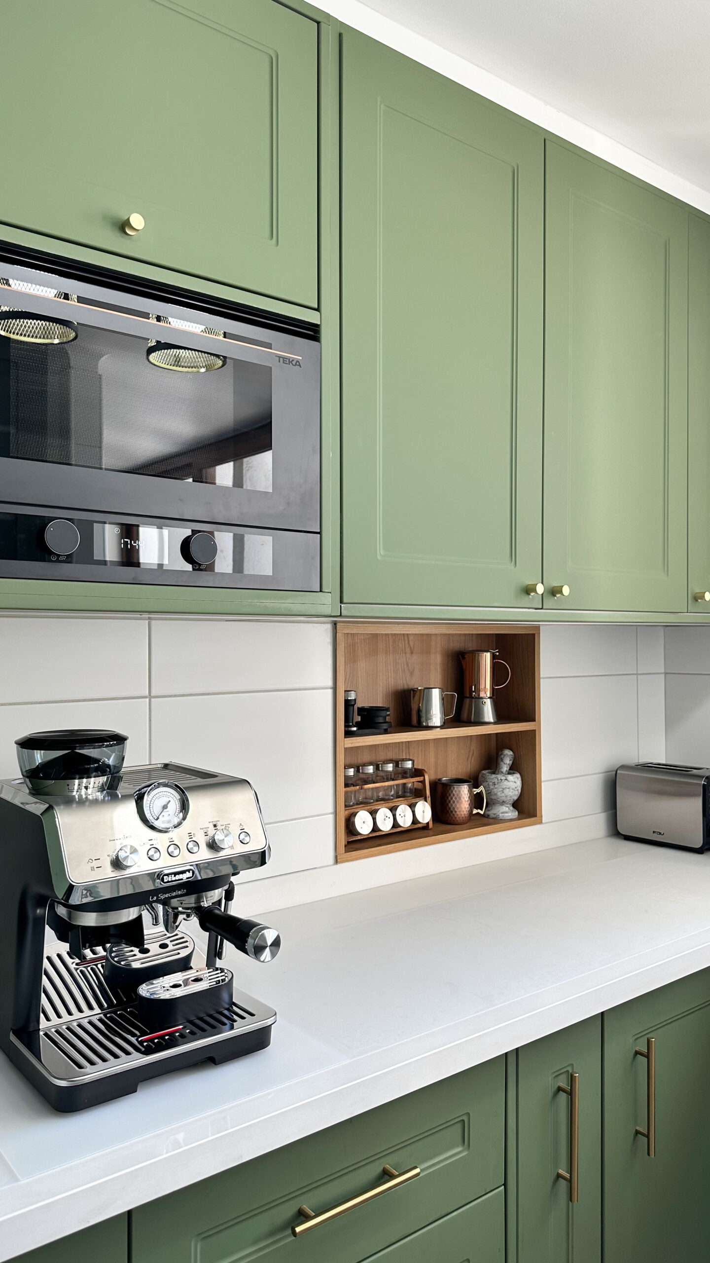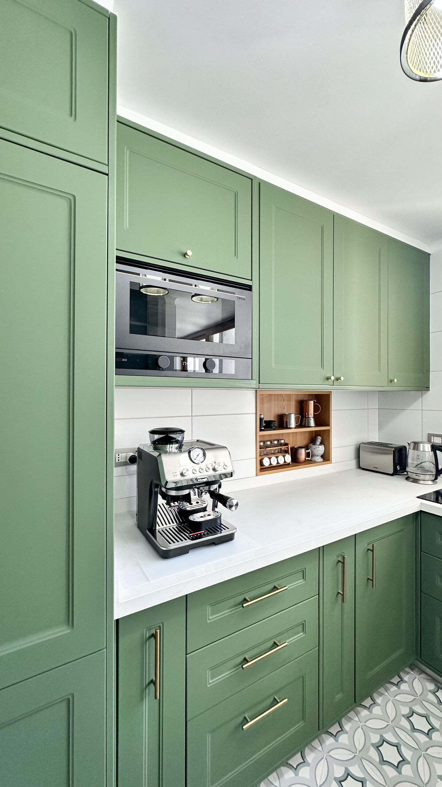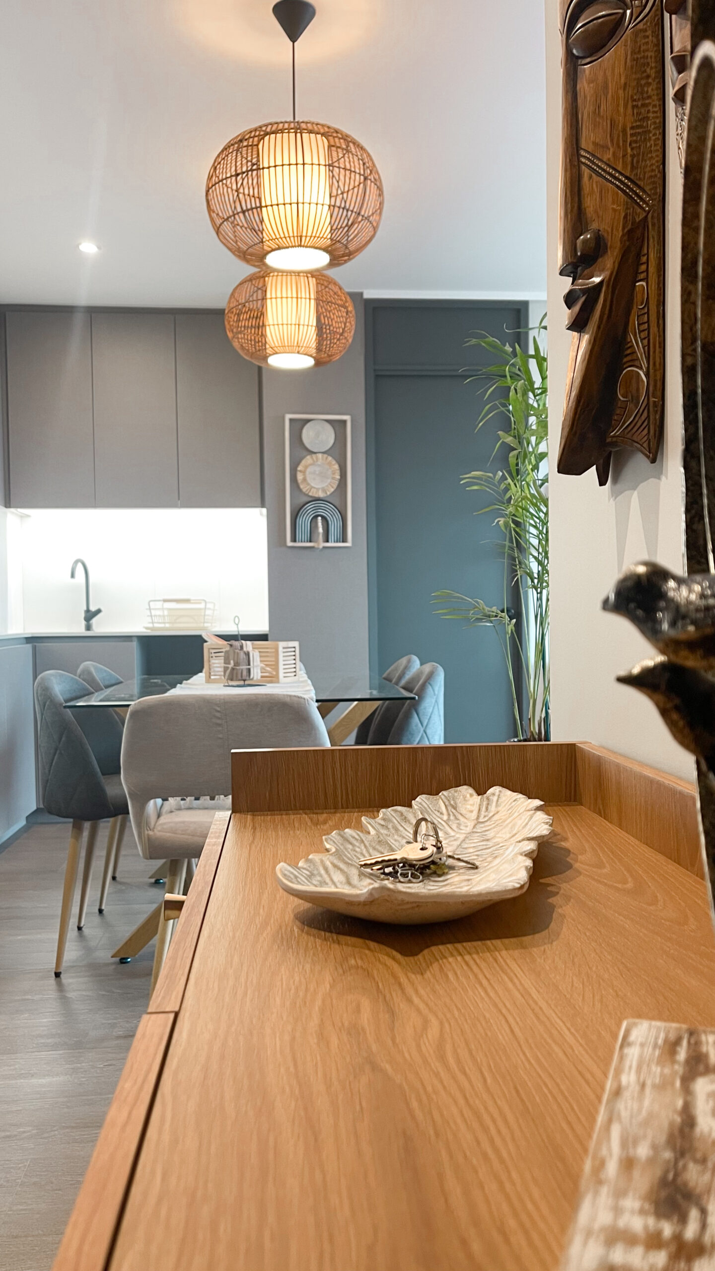 Este proyecto contempla la ampliación de la cocina y la incorporación de una zona de despensa, mejorando la funcionalidad y el orden del espacio. El diseño combina mobiliario en melanina gris con cubiertas blancas, integrando detalles en madera cálida que aportan contraste y carácter. El resultado es una cocina equilibrada, contemporánea y pensada para el uso diario.